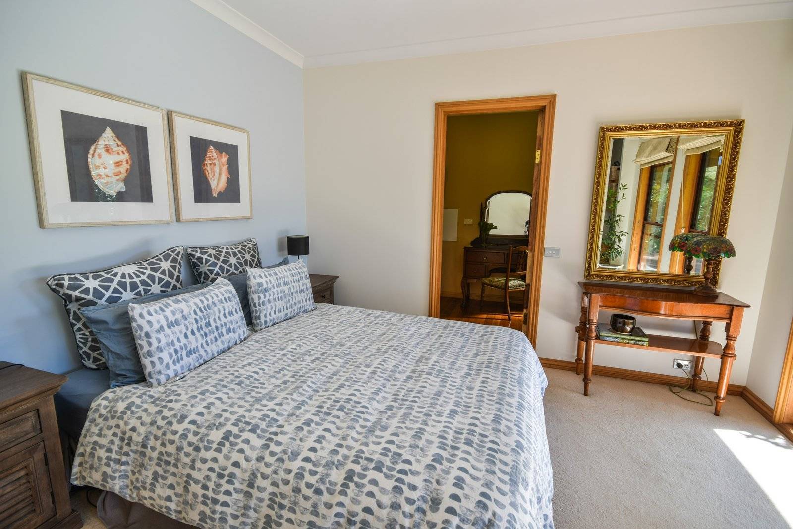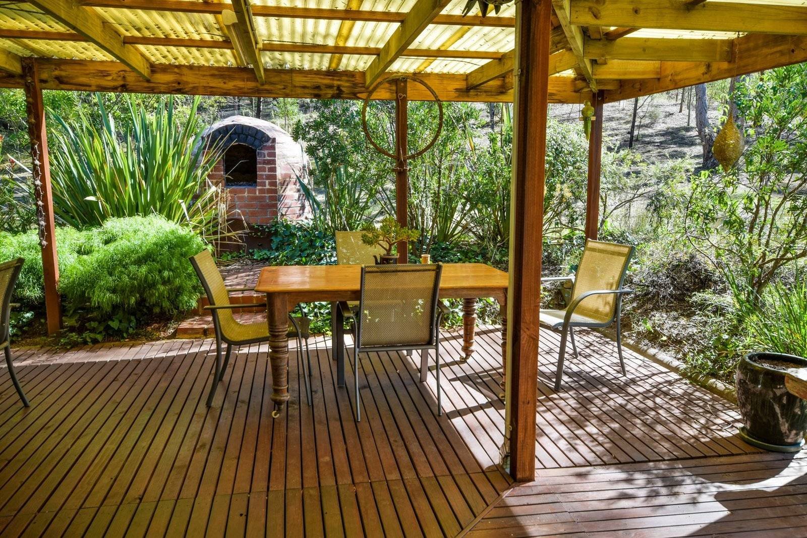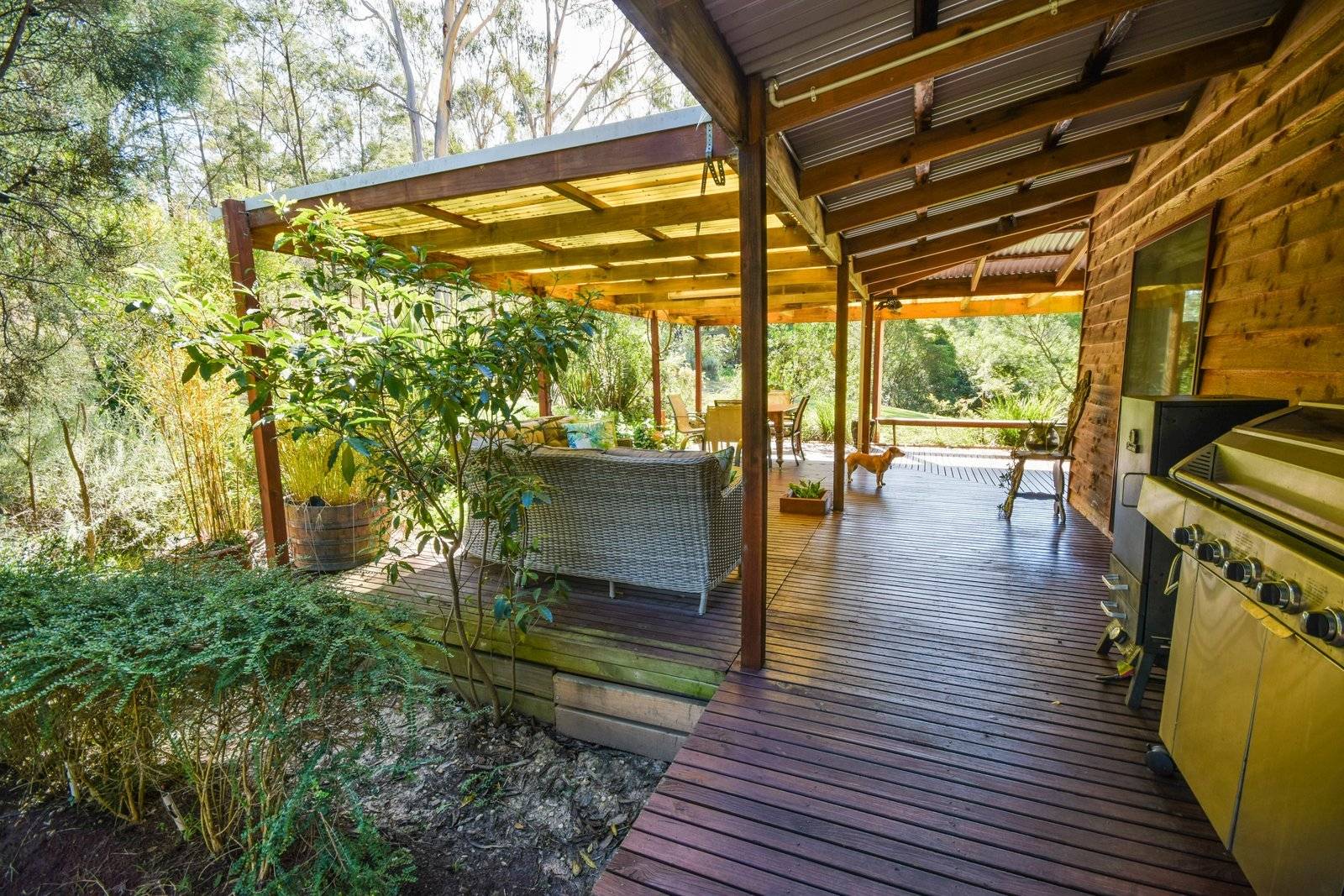 The options are endless here, extended family, B & B, permanent plus income. Set in a picturesque setting on approx. 2.19ha of trees, lawns and vegie gardens is this 3 bedroom, 2 bathroom home, with separate barn housing a self contained studio and triple car garaging. The main residence features wrap around verandahs, open plan living opening out to lawns and undercover entertaining area with built-in pizza oven. The barn over 2 levels features living area down with bathroom/laundry with bedroom, kitchen/living area up. Creature comforts include woodfires and evaporative cooling. This property has the added advantage of a jetty berth. If you are looking for a secluded sanctuary where you can sit around the fire pit or enjoy entertaining around the pizza oven, this property is simply irresistible.