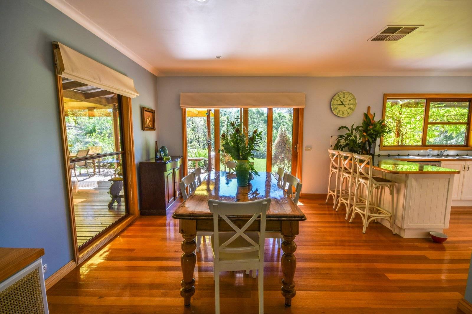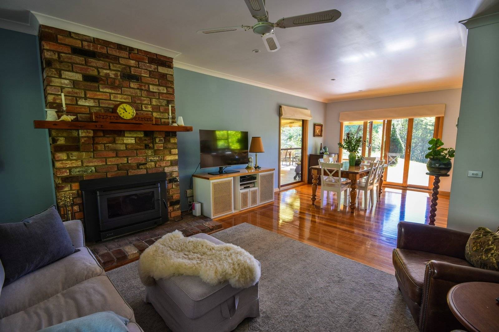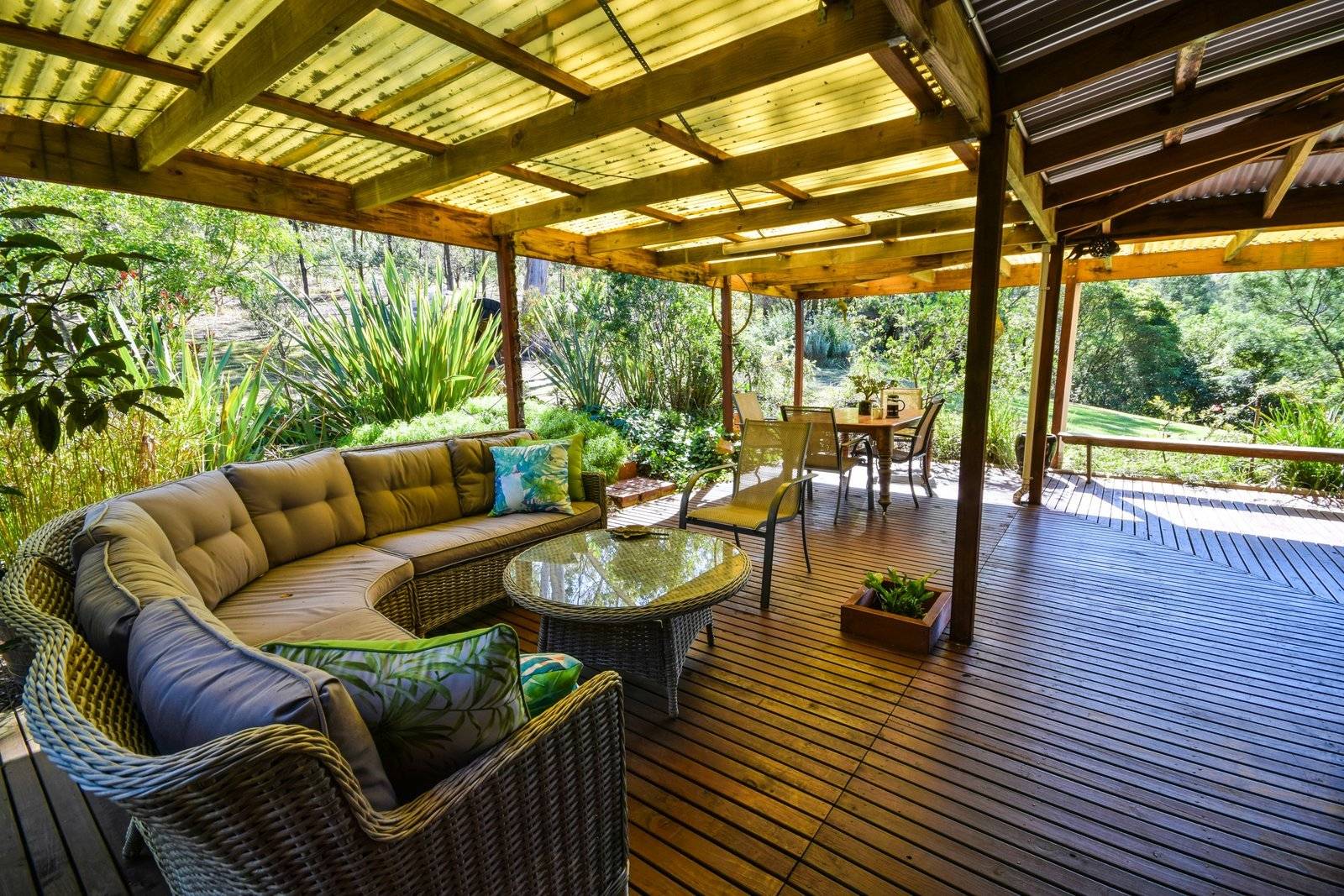 The options are endless here, extended family, B & B, permanent plus income. Set in a picturesque setting on approx. 2.19ha of trees, lawns and vegie gardens is this 3 bedroom, 2 bathroom home, with separate barn housing a self contained studio and triple car garaging. The main residence features wrap around verandahs, open plan living opening out to lawns and undercover entertaining area with built-in pizza oven. The barn over 2 levels features living area down with bathroom/laundry with bedroom, kitchen/living area up. Creature comforts include woodfires and evaporative cooling. This property has the added advantage of a jetty berth. If you are looking for a secluded sanctuary where you can sit around the fire pit or enjoy entertaining around the pizza oven, this property is simply irresistible.