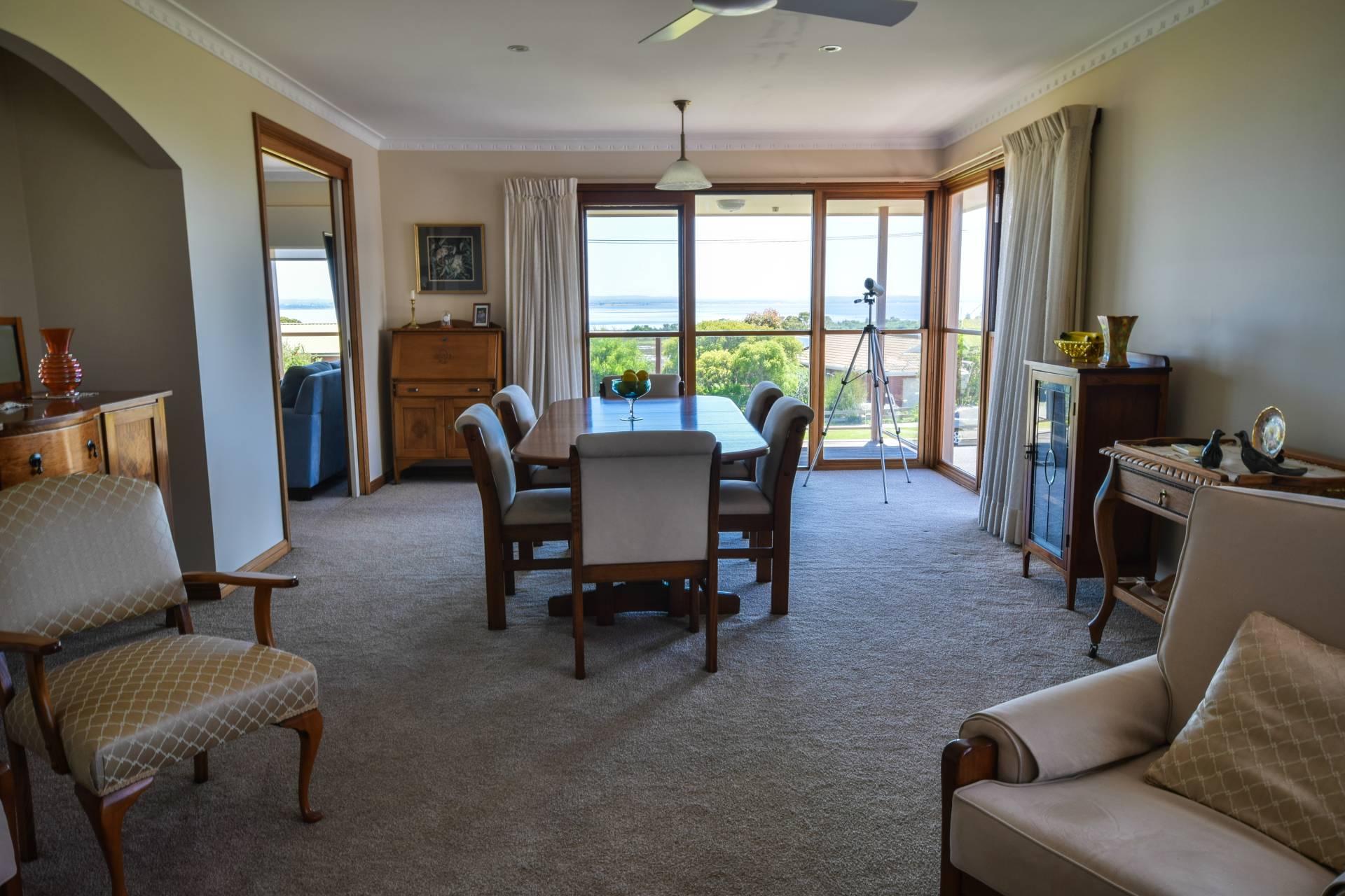 Commanding breath-taking views across Lake King and the mountains beyond this quality built north facing home sits on approx. 803sqm. A well proportioned home, it’s light, bright and offers space for the whole family. The upper level features open plan living, Blackwood timber kitchen and walk in pantry plus separate formal dining/lounge opening to front verandah where you can sit and relax with friends and family. The master suite on the upper level offers large walk in robe and separate modern bathroom. There’s plenty of space for the family on the lower level with two large bedrooms, family bathroom, separate laundry and rumpus room with built in sink, perfect for kids space or with its own entrance, working from home. If you are looking for a home to house all the toys, then you have found it, double garage, carport to house up to 4 cars and not forgetting large workshop. Features Include: 12 x Solar panels, 3 x  ceiling fans and 4 x R/C Air cons. Call to arrange an inspection.