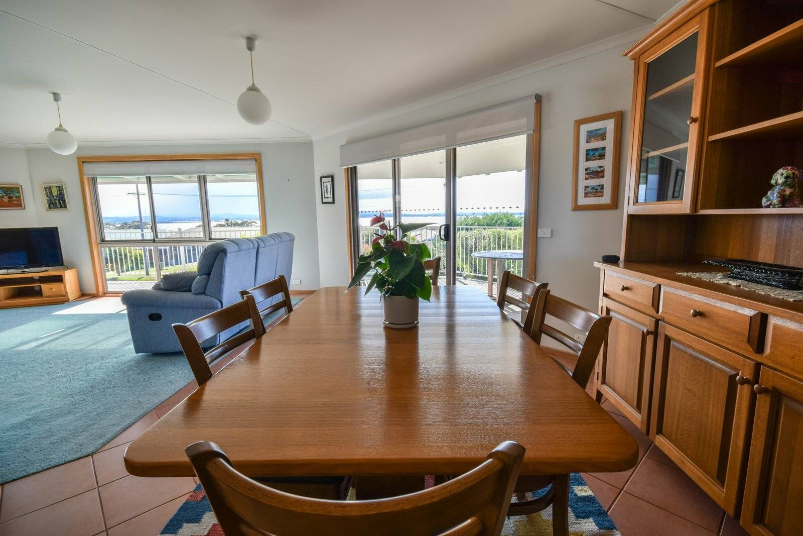 Do you want to live in a solid and spacious home with 180 degree views of Lake King and the mountains beyond and be within walking distance to the lake, then this is the place for you. This north facing home is warm and inviting with large kitchen and living and plenty of room for the family. The house is considerably more spacious than it first appears. There are 3 bedrooms (master with ensuite and walk-in wardrobe) on the upper level, plus a further two bedrooms downstairs serviced by the family bathroom complete with spa bath, rumpus/workshop and study, ideal if you work from home. The living area opens to the balcony across the front of the home taking in the stunning vista and is partially covered for entertaining. Other features include; steel framed, both gas and reverse cycle heating and cooling, solar, grocery lift, double carport and double garage. So many options with this property.