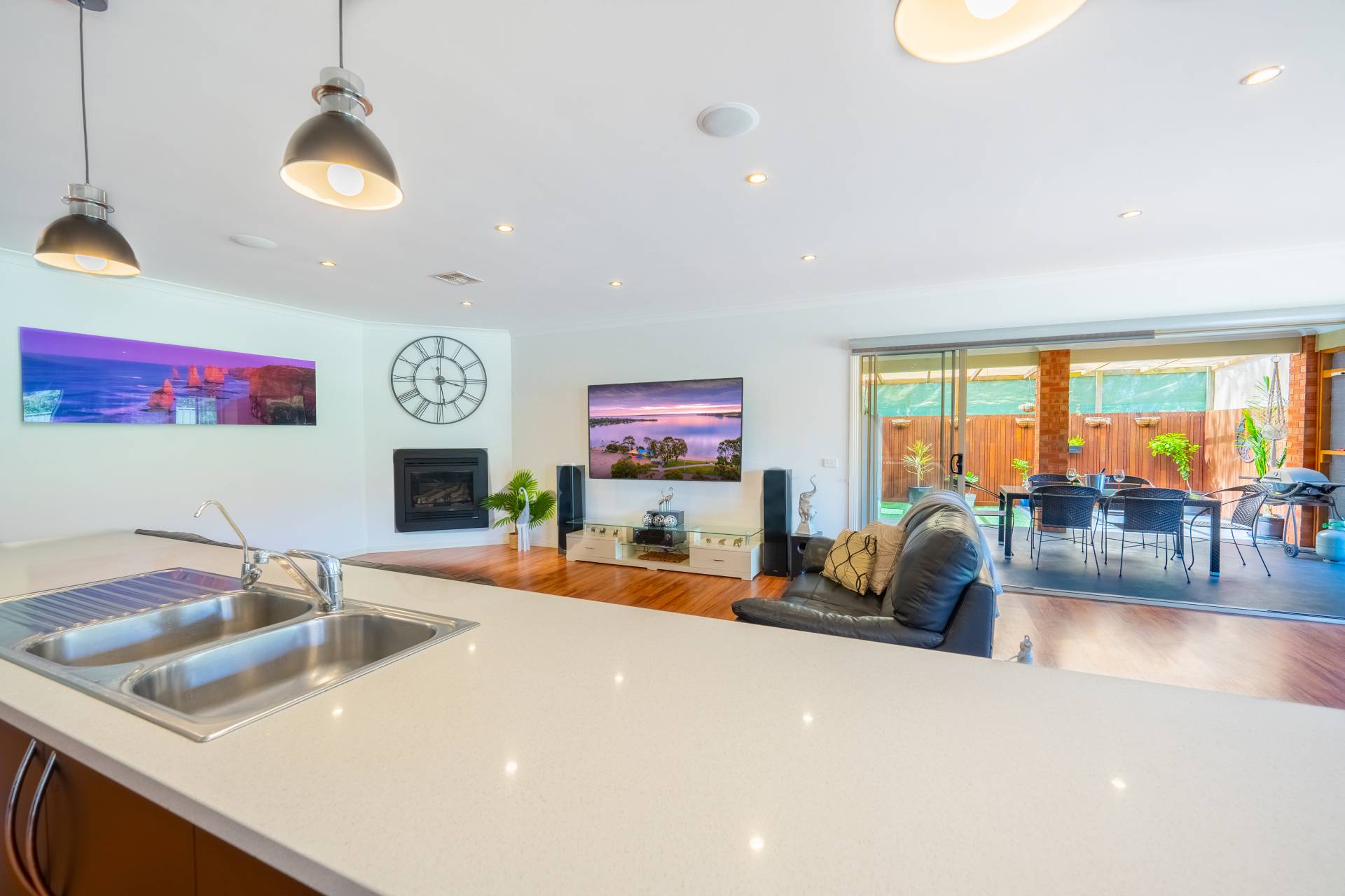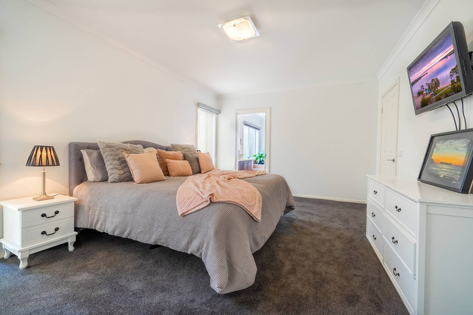 Looking to upsize, then look no further. This large 4 bedroom home is just what you are looking for.  A spacious master bedroom at the front of the home with large walk-in wardrobe and large ensuite including bath and double shower. Adjacent to the master suite is a separate study and powder room. The additional 3 bedrooms in a separate zone feature built-in robes with both hanging space and drawers and share the family bathroom with large shower and bath and separate powder room.  The hub of the home is an entertainers/chefs delight offering spacious kitchen, new 900mm stove, stone bench tops and plenty of storage, a well appointed walk-in pantry, dishwasher and large refrigerator cavity. Open the stacker doors and extend the large open plan living space to the outdoors. The entertaining area is covered and partially enclosed, giving plenty of space for friends and family to gather. A separate laundry and walk-in linen cupboard are located off the kitchen area. A second living area doubles as a theatre room complete with movie screen. Other features of this magnificent family home are gas log fire, ducted reverse cycle and solar power and hot water. The added bonus is drive through access for the boat and/or caravan and low maintenance gardens.  All this within walking distance to shops, cafe's and lake.