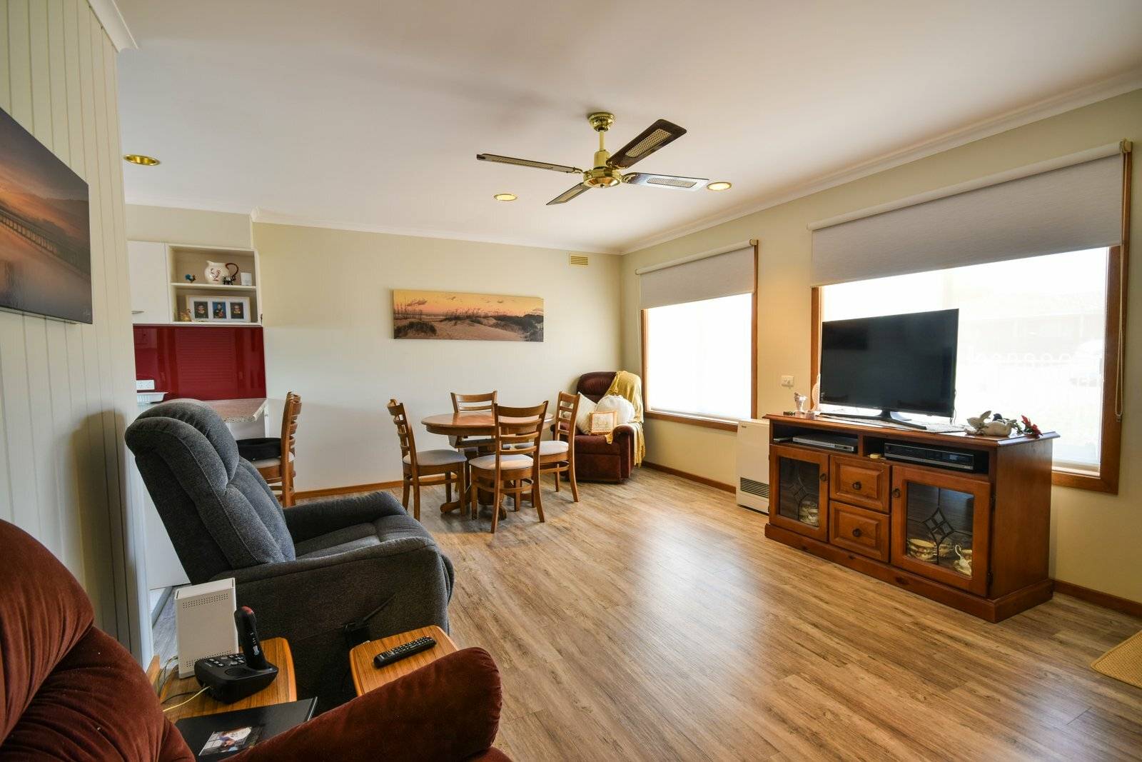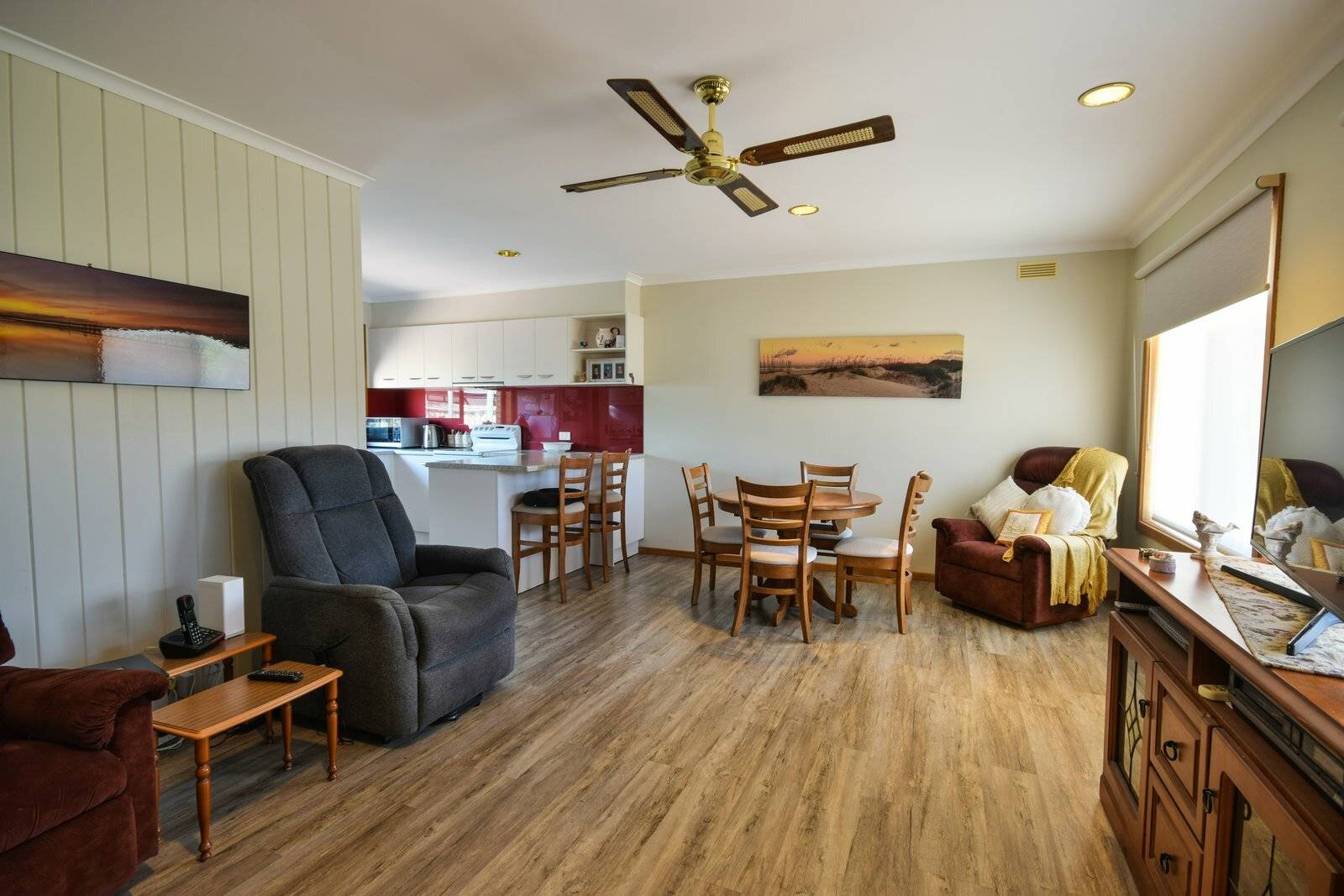 Thinking of downsizing or looking for a solid investment property, look no further. This well presented 2 bedroom home offers modern kitchen and new flooring, open plan living, single garage and the bonus of a studio/sleep-out at the rear, perfect for guests or hobby room. Other features include low maintenance gardens, garden shed for the tools or potter in. An easy stroll to the bowling club and footy ovals.