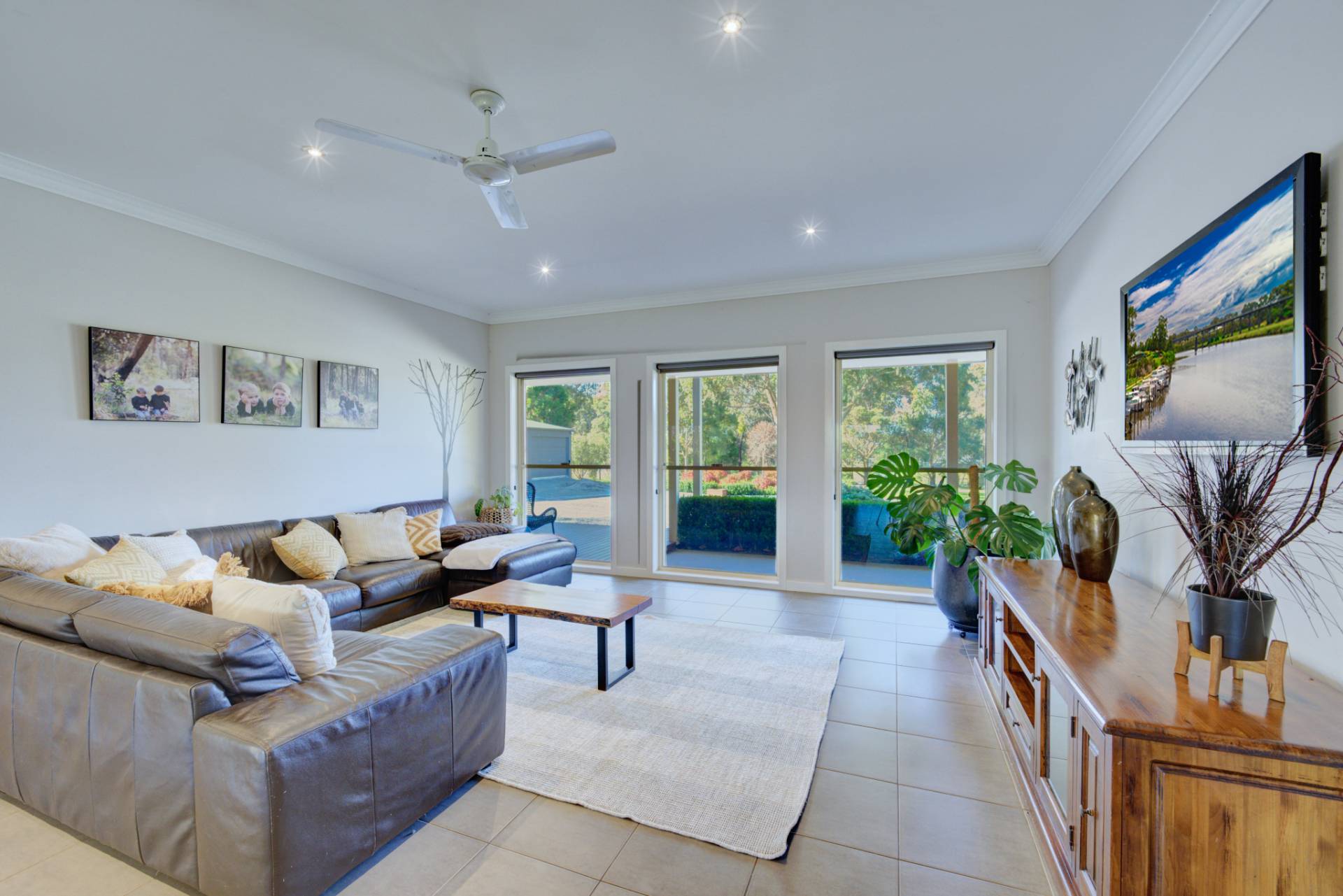 This 4 bedroom, 2 bathroom ranch style home on 2.5 acres (approx) is a true gem that exceeds all expectations! Stepping into the large entrance foyer with its wide halls prepares you for what is to follow.  The main bedroom is a sanctuary in itself, boasting an expansive layout with its own lounge area, a spacious ensuite with double basins, big walk-in shower and fabulous walk-in wardrobe that will impress even the most discerning buyer.  The children's wing has 3 bedrooms and its own lounge area which can all be shut off from the rest of the house.  The expansive kitchen, dining and family area is the focal point of the home . The large scale laundry has floor to ceiling walk-in storage cupboards which is hidden behind sliding doors.  Leading off the family area is a 6m undercover deck for more casual entertaining.  This deck overlooks a big grassy area, farmland, your own orchard(!) and vegetable gardens - and not to forget, the outside 5x2 swim-spa and the oversized in-ground fire pit.  A beautifully lush garden, 2 car garage with workshop, double car-port and 2 large sheds on this property make this a great, walk-in ready family home. Call Wendy on 0467 032 010 to arrange an inspection