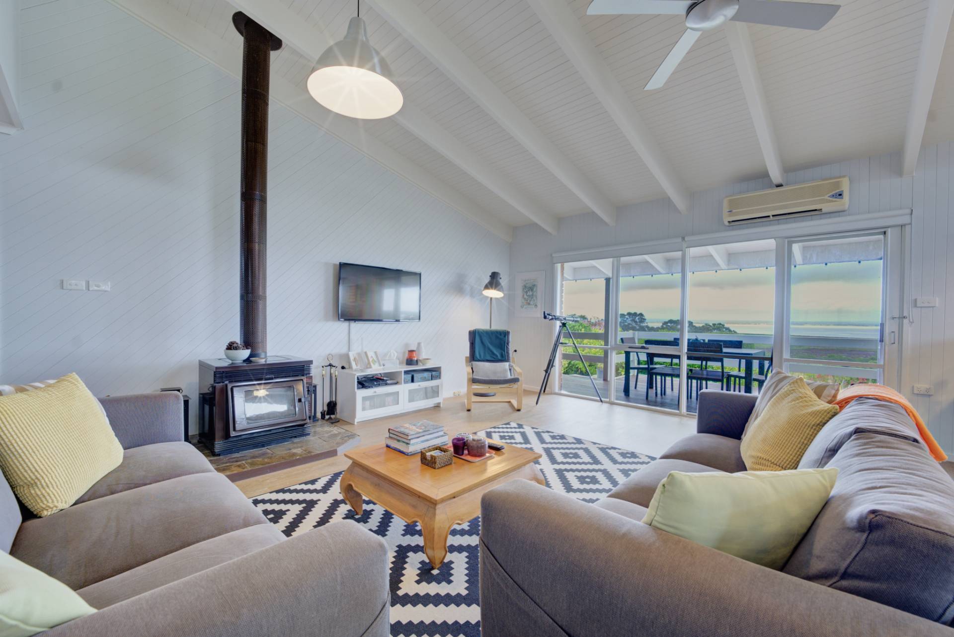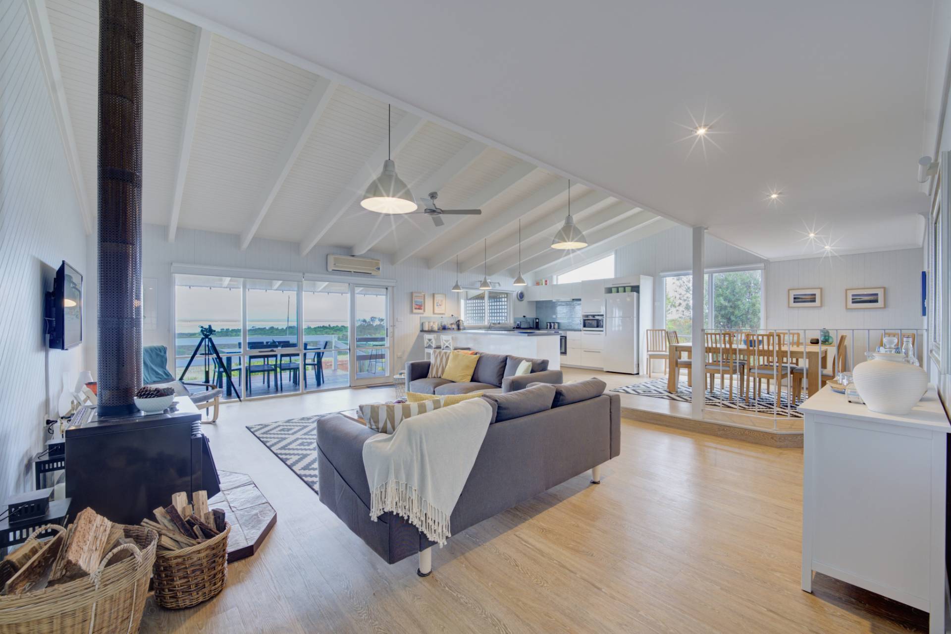 This 3bedroom, 2bathroom home is absolutely stunning, especially with its commanding position at the highest point in the street which gives the most expansive views of Lake King on the Gippsland Lakes.  The main living area has a wide entry foyer and features those breath-taking views creating a serene and welcoming atmosphere.  The large combined lounge/dining/kitchen area is a stand out feature, perfect for both everyday living and entertaining. The modern and renovated kitchen has expansive benchtops, ample storage and an induction cooktop, all of which will impress any chef.  White raked ceilings in the living area add ambience, elegance and openness to the home and the wood heater creates winter warmth throughout the whole house.  Reverse cycle air-conditioning provides additional comfort all year round.  The undercover deck opens from the lounge and is a major high light providing an ideal spot to relax, take in the views and to entertain.  The layout of the 3 bedrooms offers both privacy and flexibility making it suitable for family and/or guests.  At one side of the home is a good sized bedroom, modern bathroom and a laundry with great storage.  The main bedroom on the other side of the house overlooks the deck and has a fabulous room sized walk-in wardrobe. A good sized bathroom services both the main and the third bedroom in this area.  The two car carport provides ample space for vehicle storage and a single garage/workshop offers generous space for recreational equipment such as kayaks, bikes and camping equipment.  The addition of a second carport on the opposite side of the home, which previously housed a 25ft yacht, adds to the versatility of the property.  Overall, this property is a blend of of modern comfort, stunning views and practicality, making it the ideal place to call home, a lock-up and leave holiday home or an astute business proposition for the holiday rental market in the ever growing and ever popular town of Paynesville.