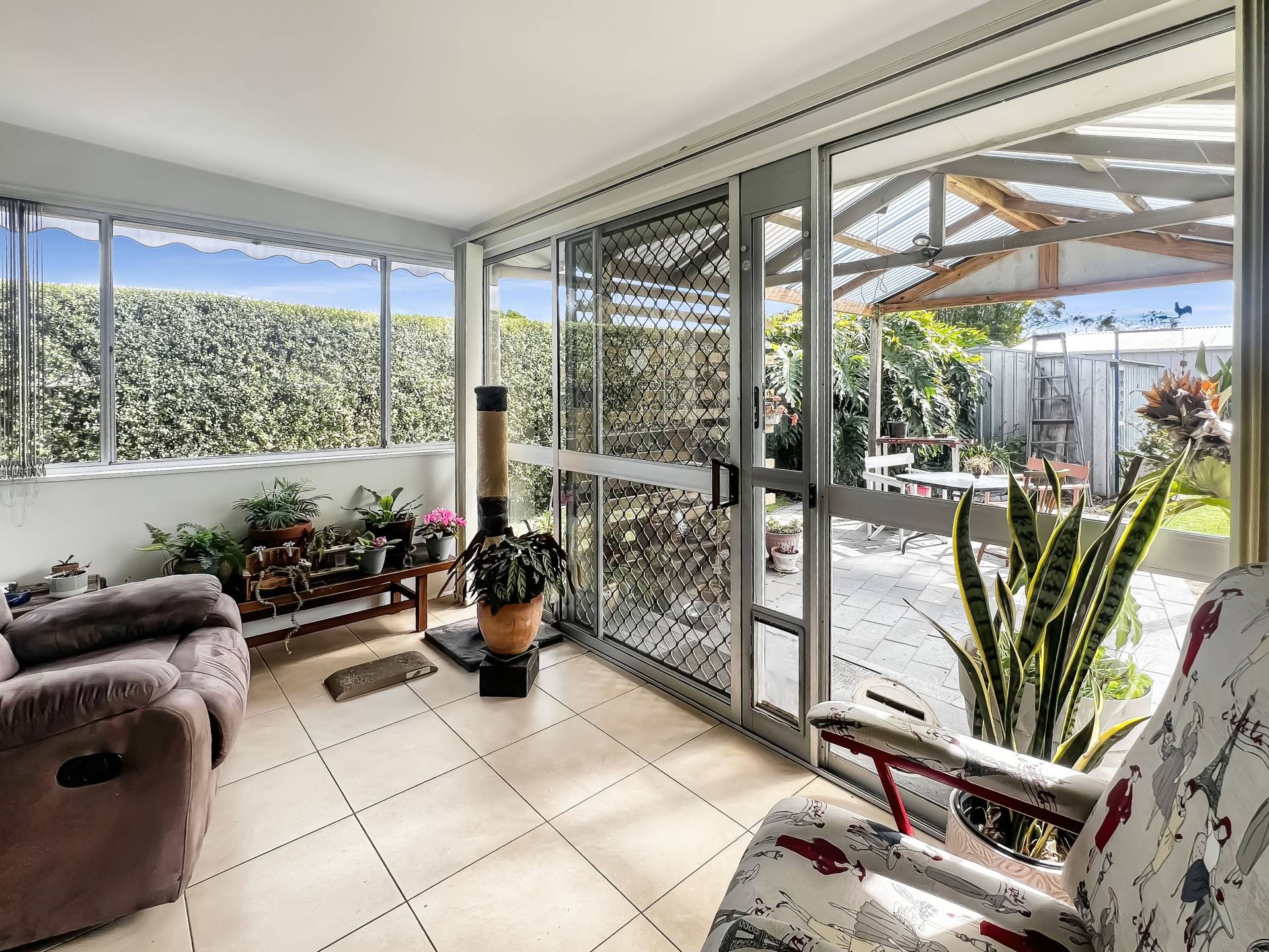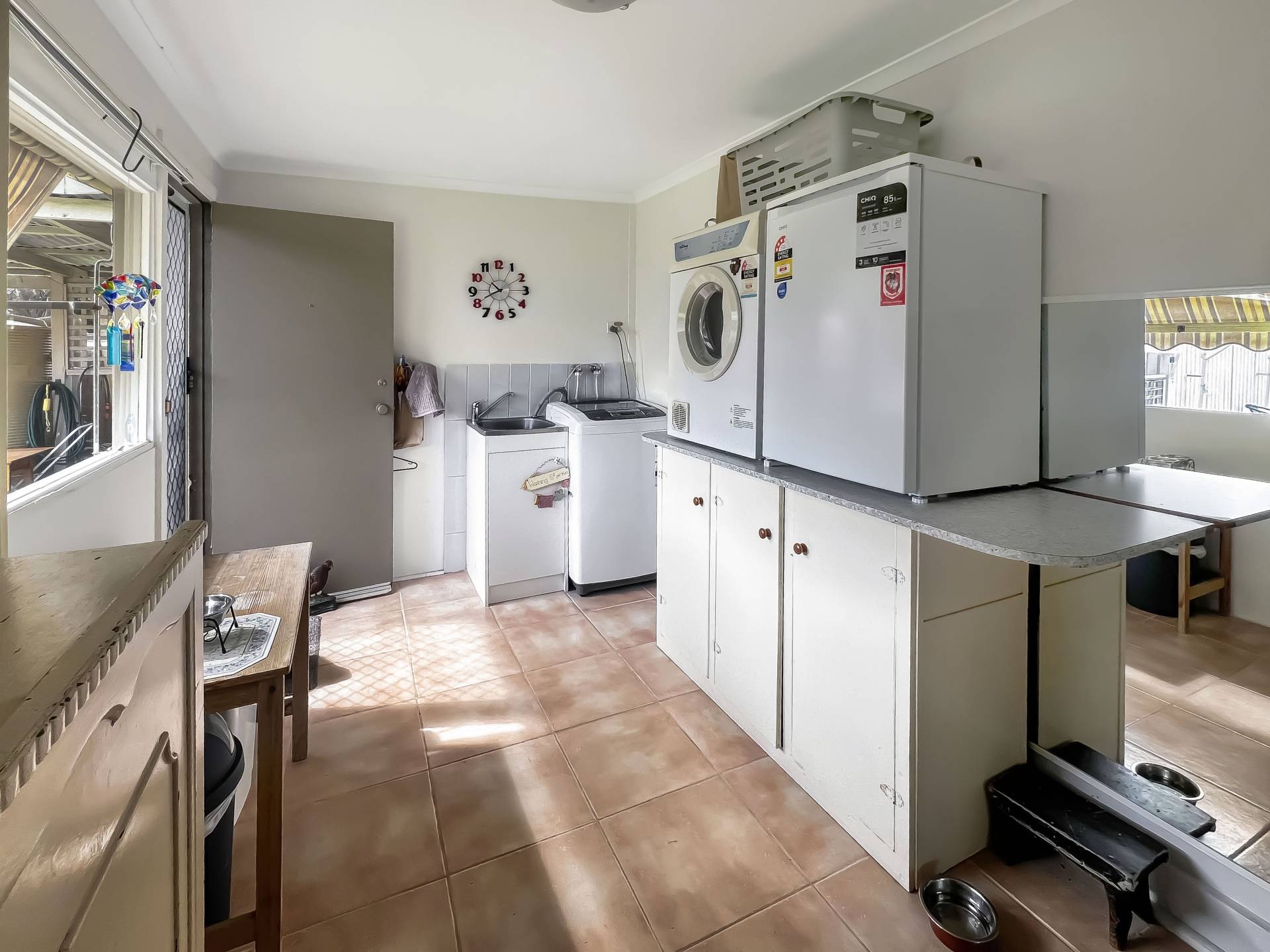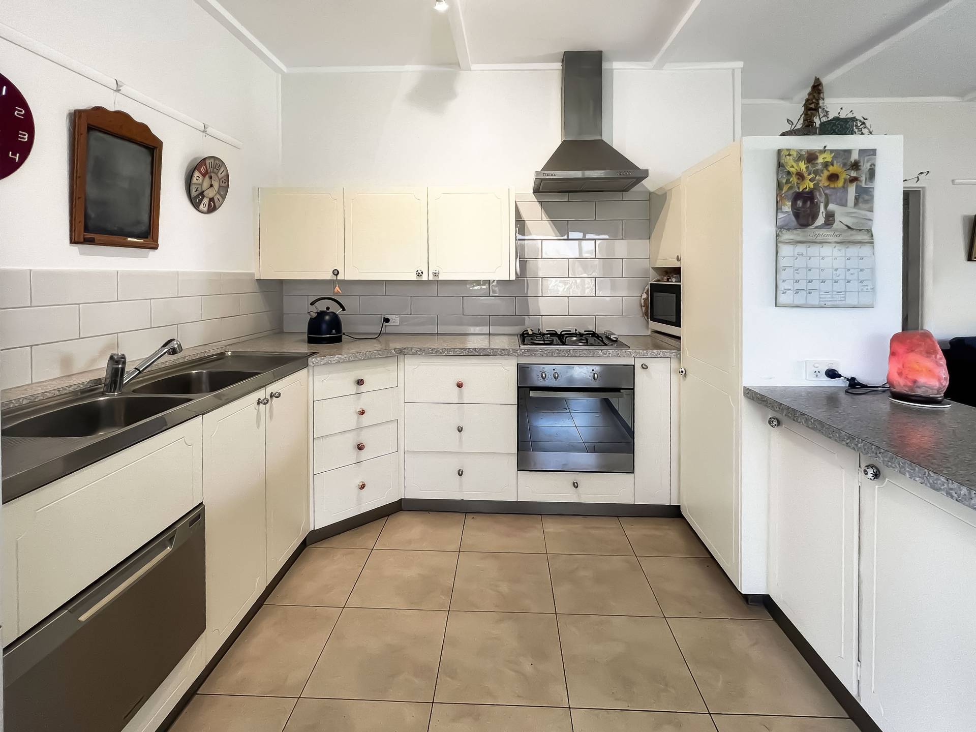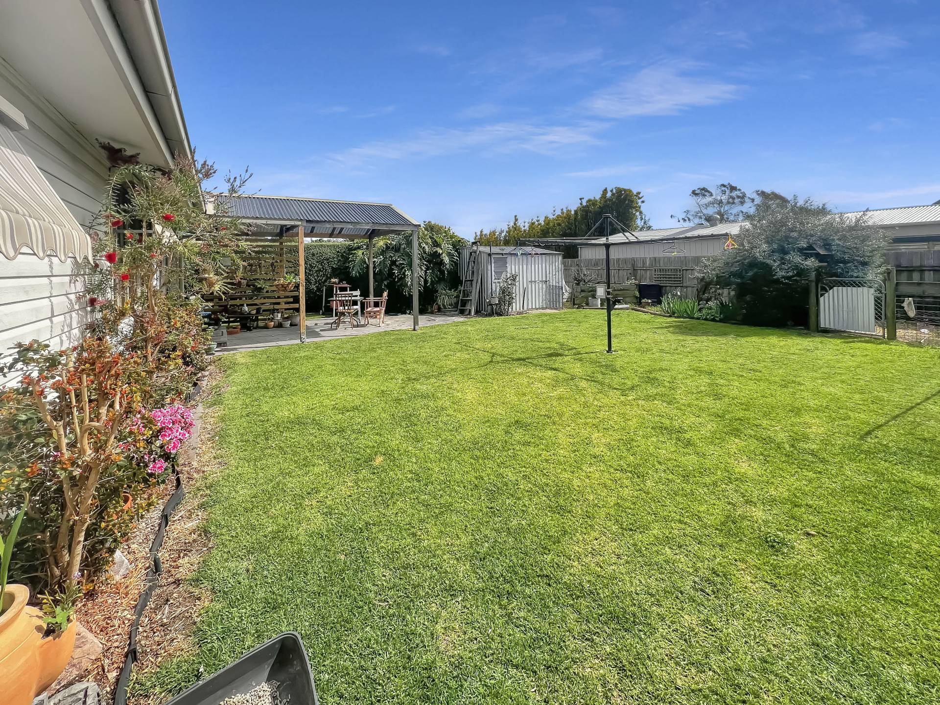 The backyard is fully fenced and pet-friendly, featuring a chicken run, two raised veggie beds, a 3,300L (approx.) water tank and a garden shed for added convenience.