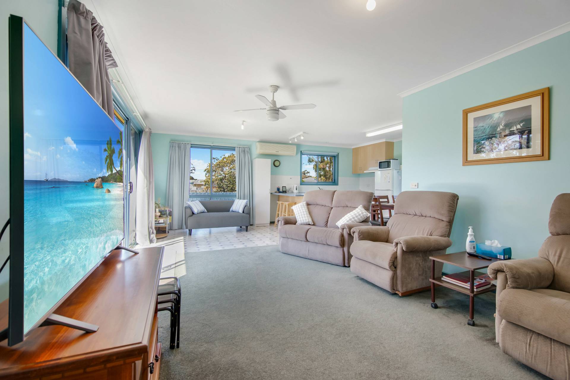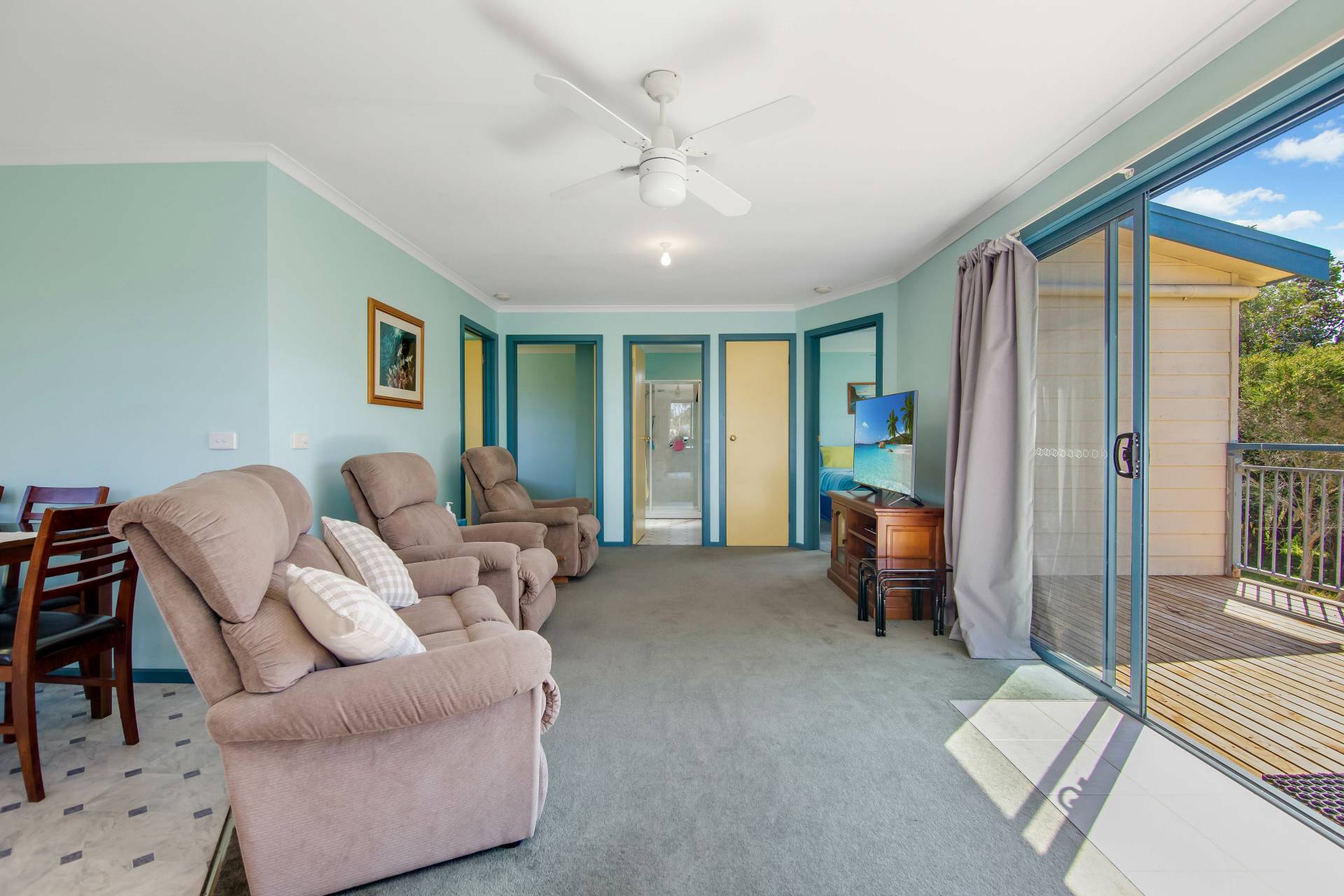 Upstairs features 3 bright and airy bedrooms serviced by a central bathroom. The spacious open-plan kitchen, living, and dining area is bathed in natural light and complemented by ceiling fan and reverse cycle A/C for year-round comfort.  Seamless indoor-outdoor flow from the family area is enhanced with double sliding doors leading to a north-facing entertaining deck and is perfect for relaxing or hosting guests and family.