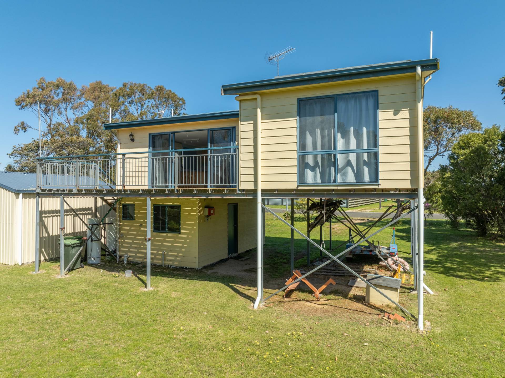 Downstairs is a versatile space which is ideal for a 4th bedroom or second living area. There is also a convenient laundry and extra toilet. The double-car carport has room for enclosure and/or expansion. The garden shed also has a shower and toilet.