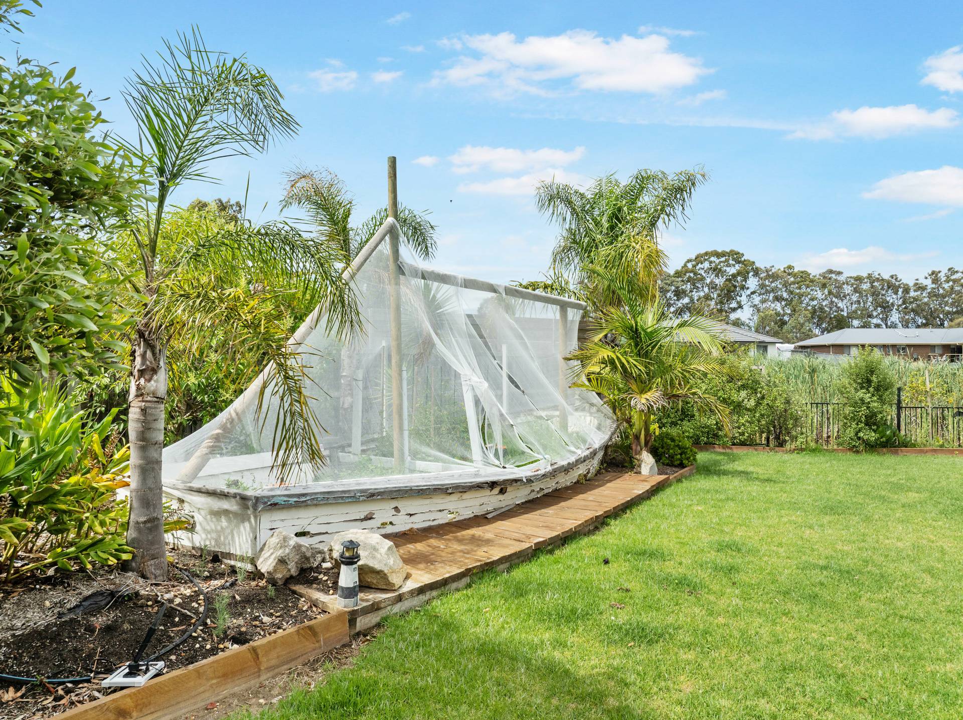 The practical extras also do not disappoint.  The double garage has internal access plus a single roller door opens to the service side of the house.  An additional 3-bay shed complete with workshop caters to all your storage/boat/caravan and project needs and is a handyman’s dream. The garden features a unique “boat vegetable garden” and irrigation system. There is also additional parking for a trailer/small boat to the side of the shed.