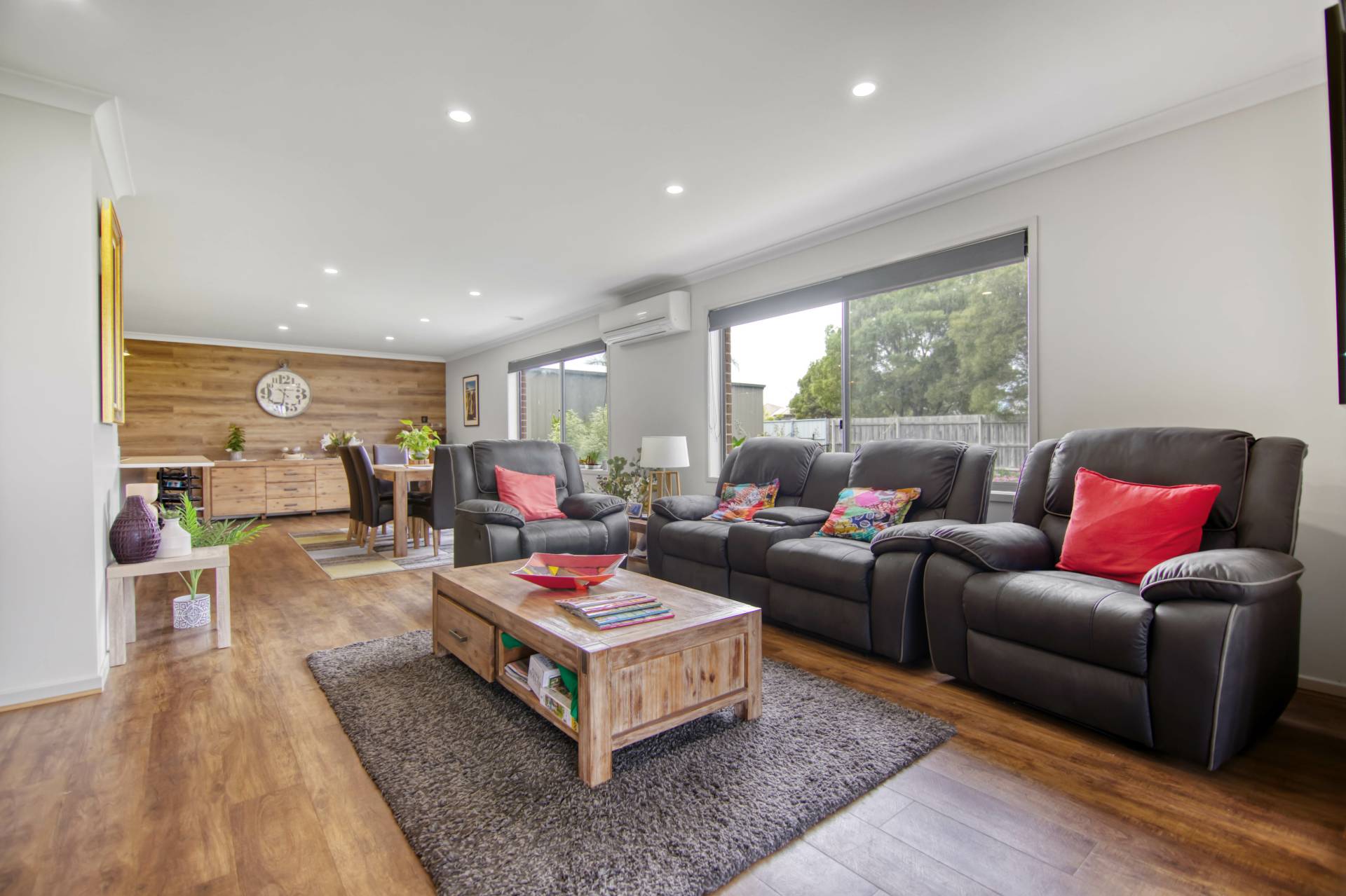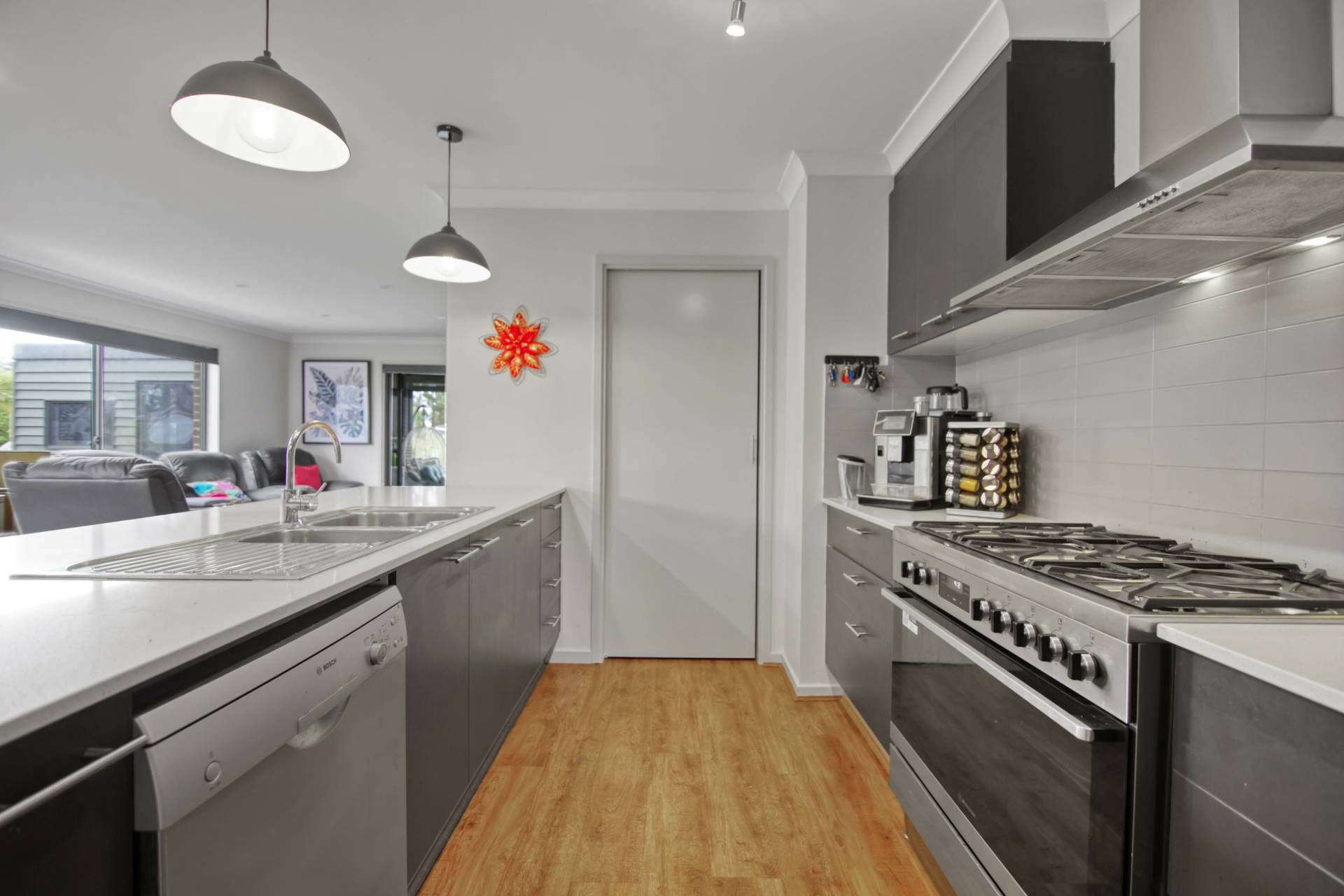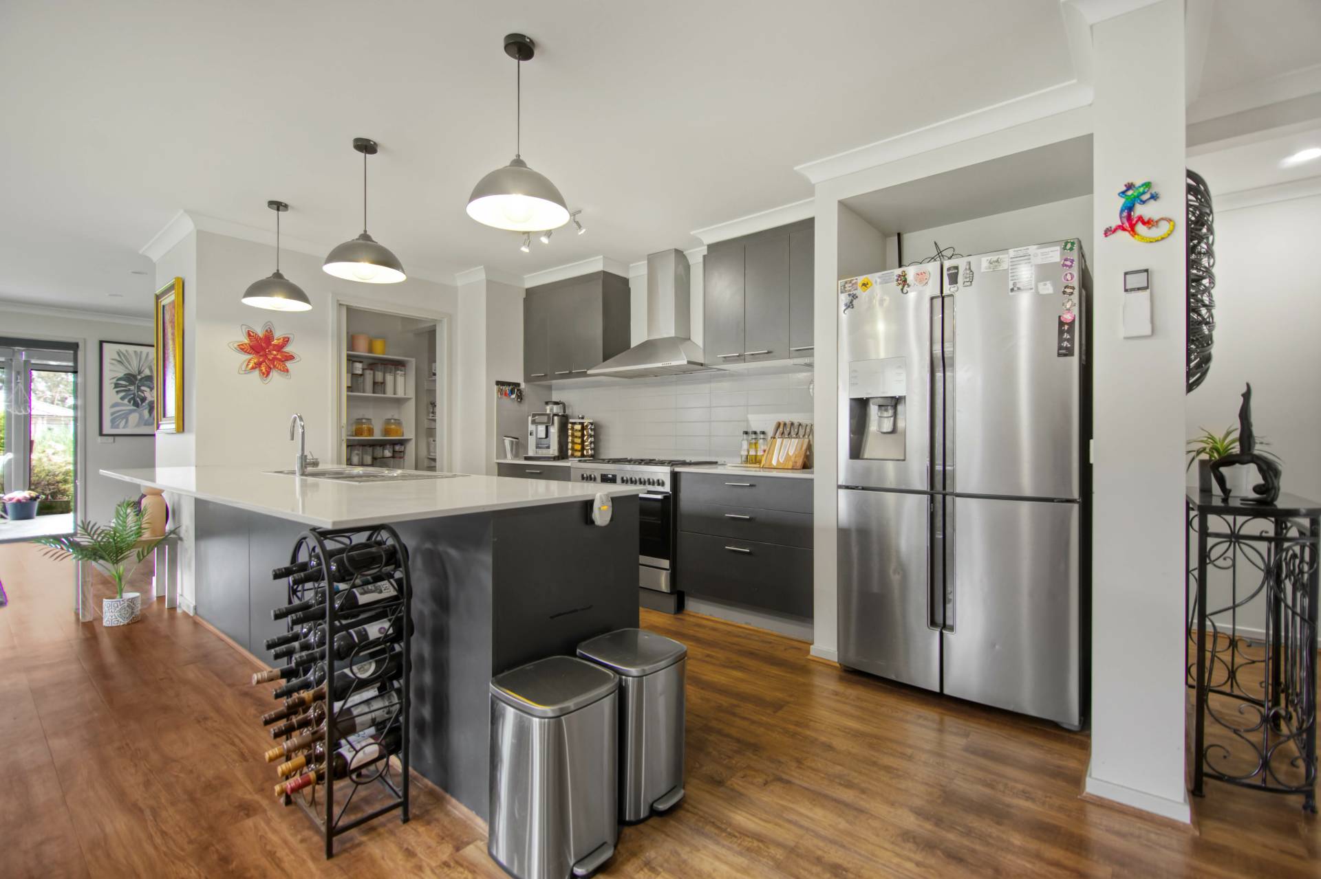 Featuring an open plan design and modern features, the heart of this home is the spacious and sun-filled kitchen/dining/family area. The sleek, contemporary kitchen overlooks the dining area with its large picture window framing the garden. Stone benchtops, 900mm oven, and a walk-in pantry are make this kitchen perfect for entertaining . Ducted heating and 2 split system AC units look after your comfort year- round.
