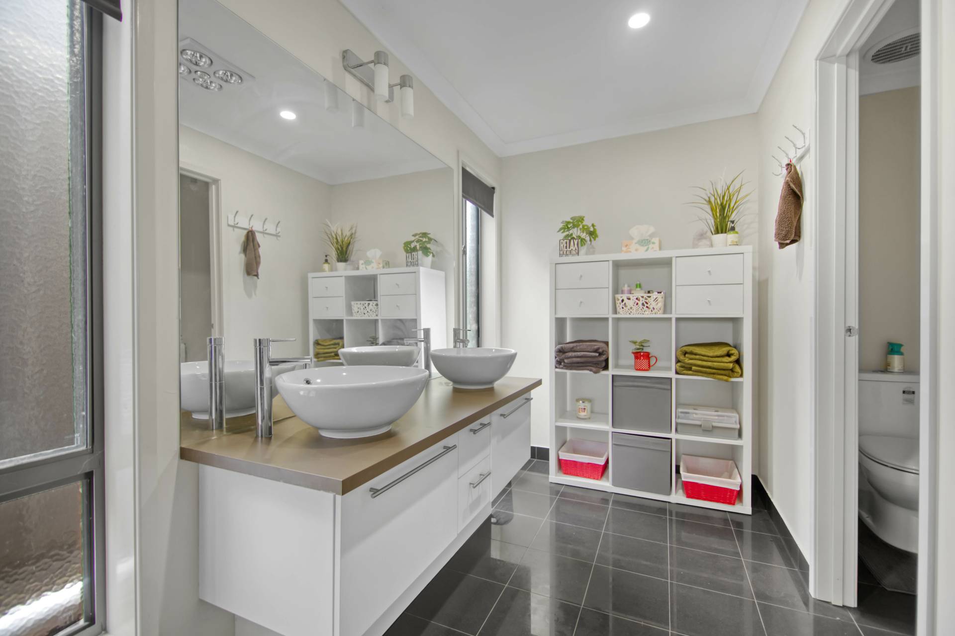 Situated off a wide entry foyer is the large main bedroom which has an ensuite with double vanities and separate toilet. The extra-large walk-in robe is a joy and a wonderful surprise!  A functional and good- sized study is also off the foyer. Three other bedrooms, all with BIRs, are to the rear of the home and a serviced by a family bathroom and separate toilet.