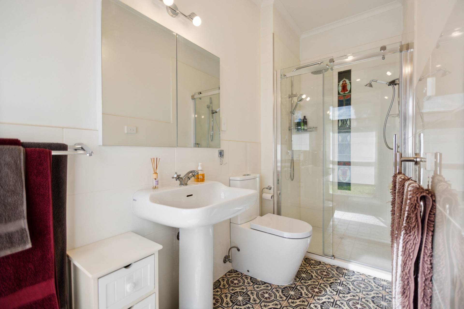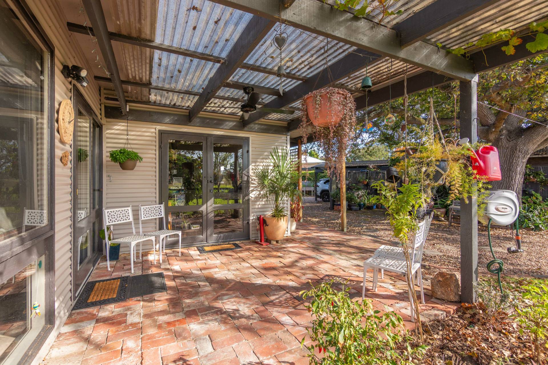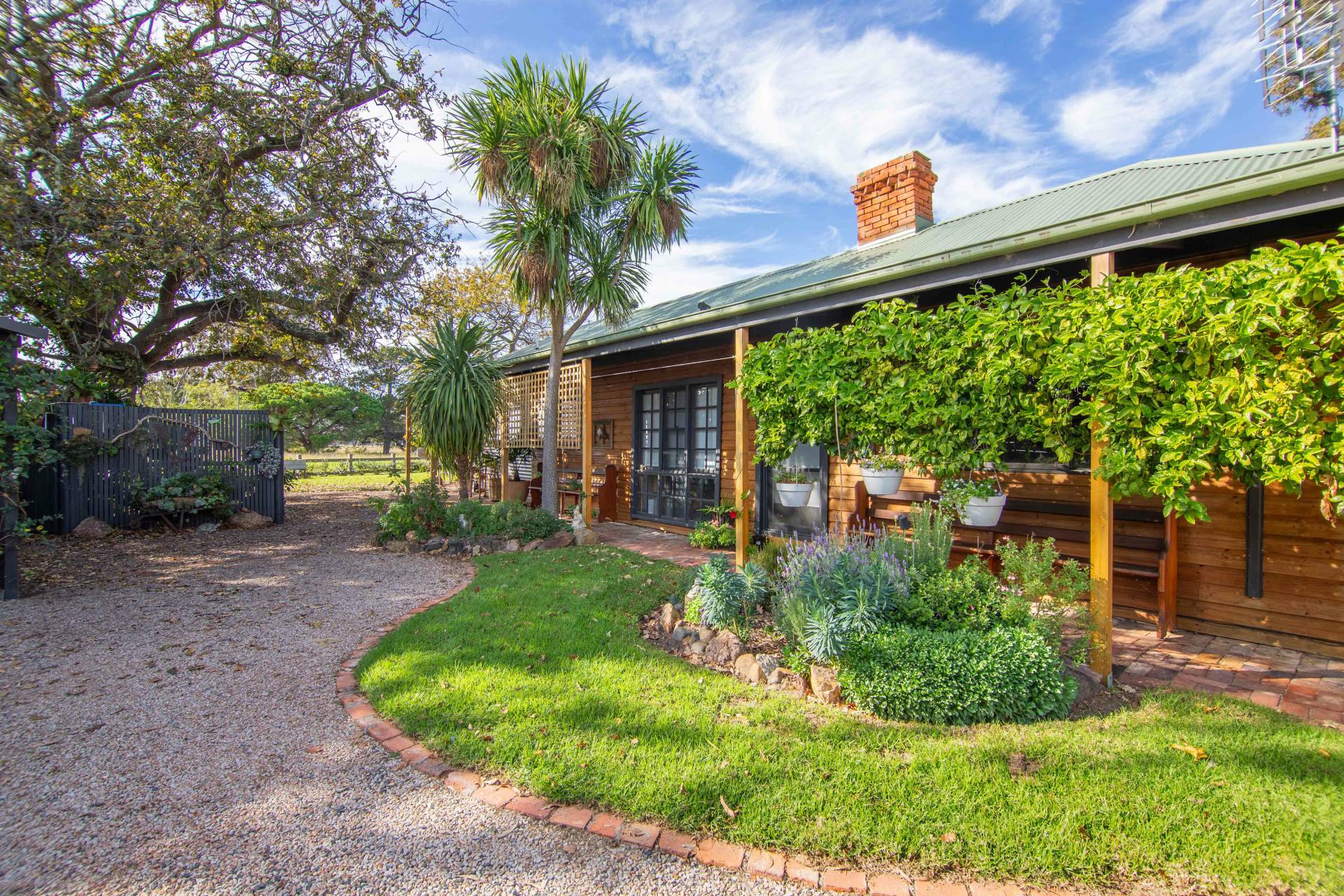 Large old oak trees and lovely established garden areas around the house provide colour and shade. There are several areas to sit and enjoy the quiet outdoors with privacy, including a back patio area north-facing onto farmland and mountain views. There is also an old-fashioned verandah on 3 sides of the home, completing the look with 'cottage red' brick paving.