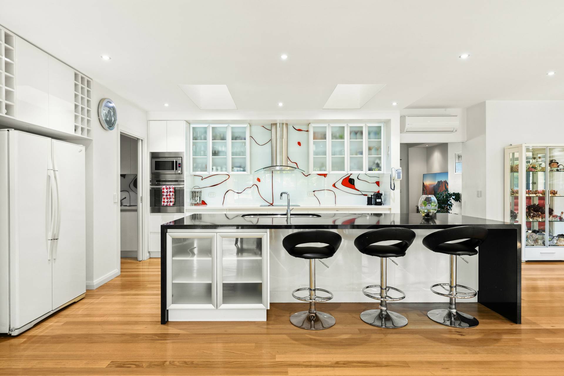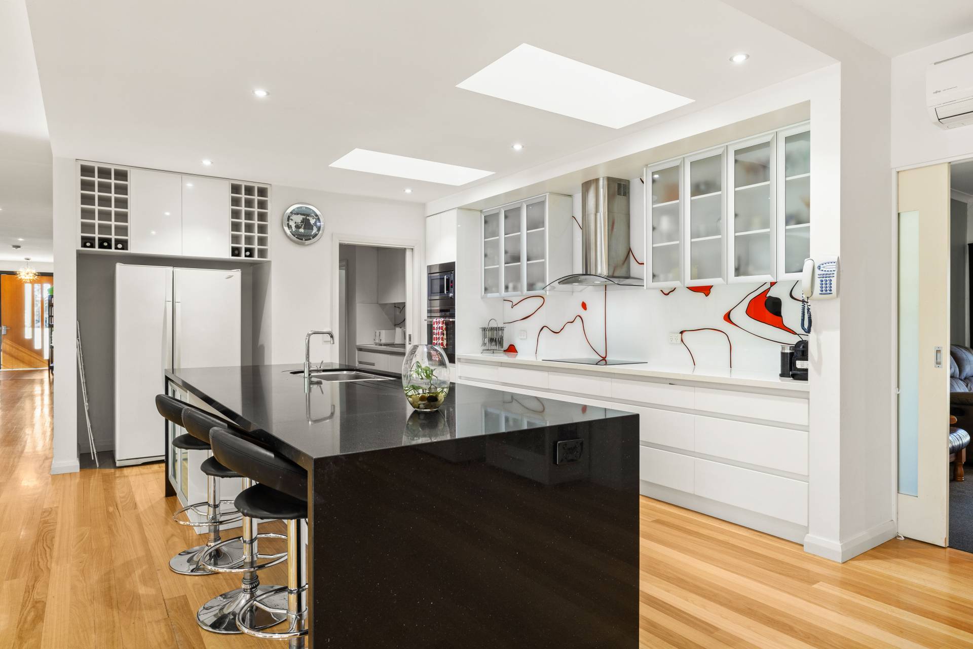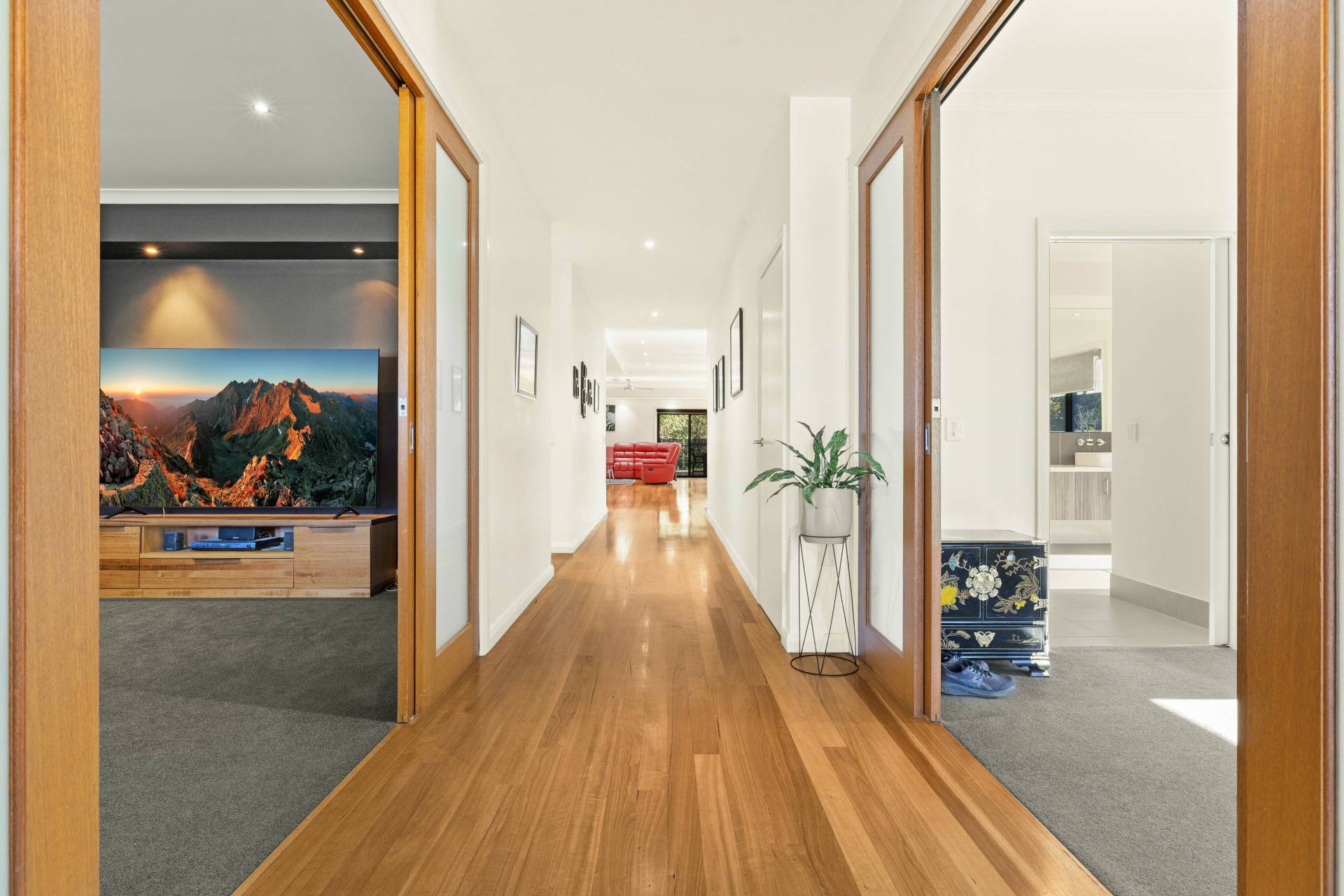 Inside, the home boasts 4 spacious bedrooms, 2.5 bathrooms and 3 separate living areas, including a sound-checked theatre room with tiered flooring and built-in LED lighting for the ultimate home cinema experience. The woodfire heater and three split systems will ensure you're comfortable all year round. Moving to the kitchen, it is as practical as it is stylish, with stone benchtops, butler’s pantry and quality appliances ready to handle everything from family meals to effortless entertaining. Designed with comfort in mind, the bathrooms boast heated floor tiles and oversized showers for a touch of everyday indulgence, while a dedicated powder room offers convenience for guests.