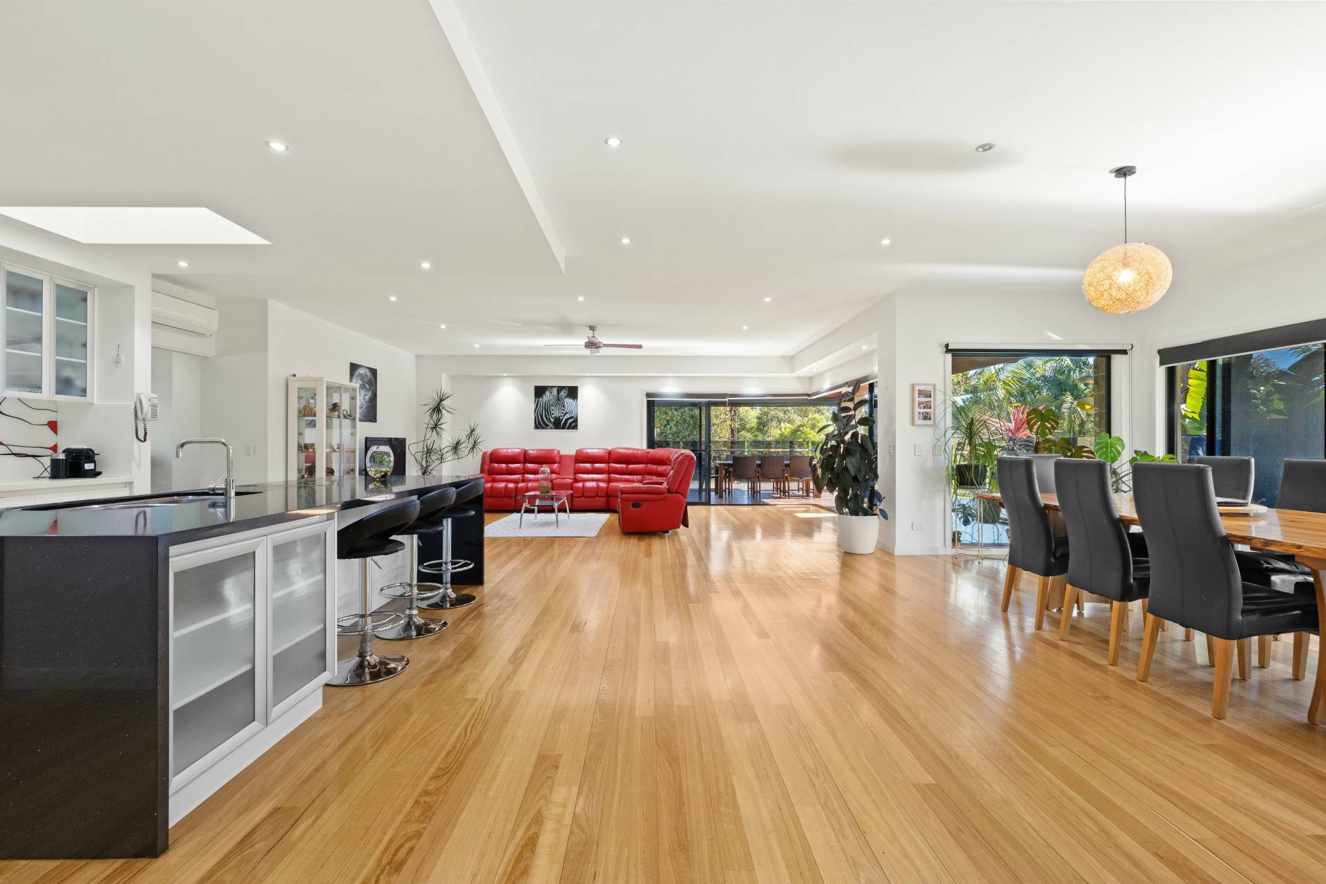 The undercover outdoor entertaining area is fully equipped with a built-in BBQ, sink, ceiling fan and heaters, plus a premium BOSE sound system. Just when you think it can’t get any better, the wrap around decking leads to a 10m x 4m heated inground pool. Automatic in floor cleaning, mineral salt chlorinated and complete with LED lighting, it’s ideal for family fun, weekend pool parties or relaxing after a big day.