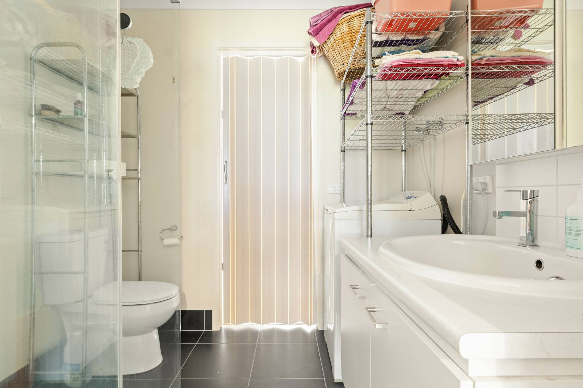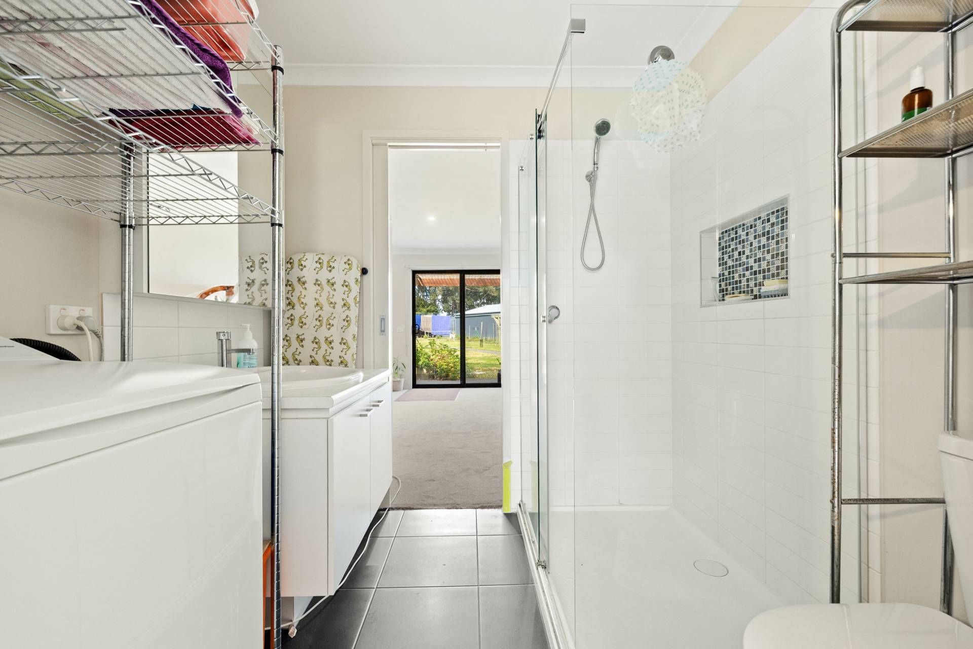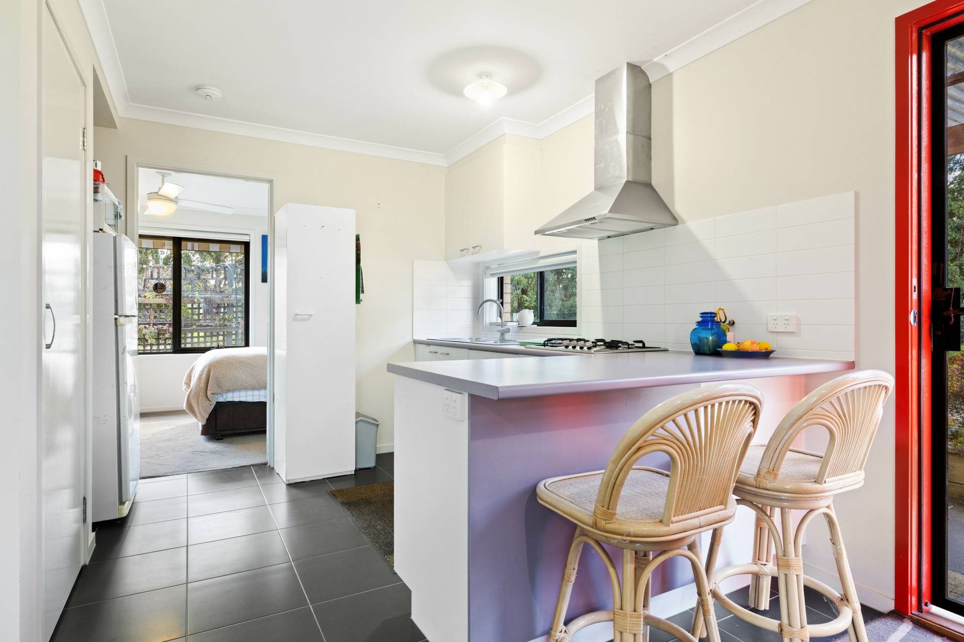 The master bedroom features an ample walk-in robe and a private ensuite, creating a comfortable retreat. Two additional bedrooms are conveniently served by a bathroom located down the hallway, which also provides access to the self-contained wing.