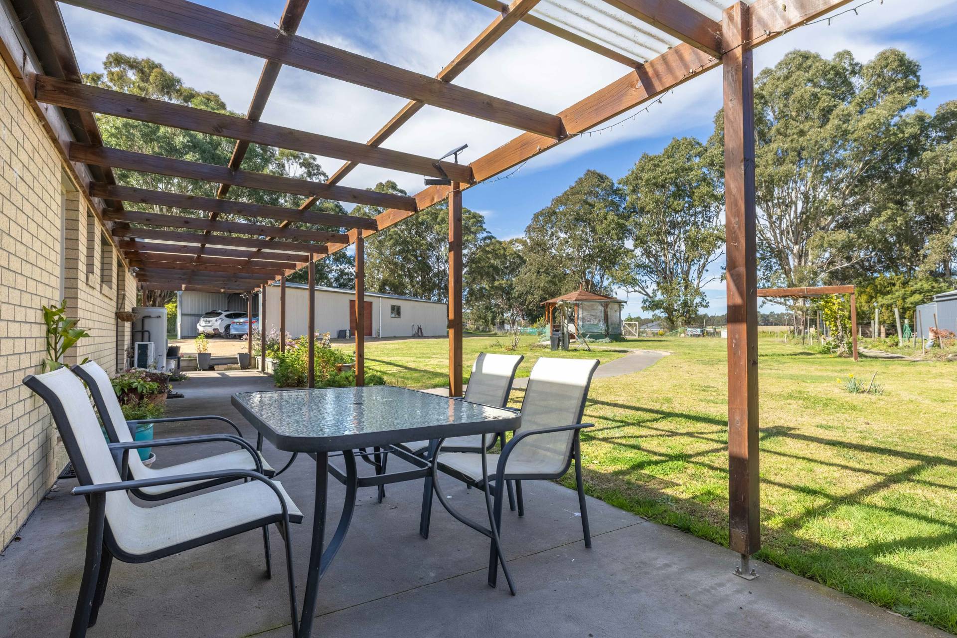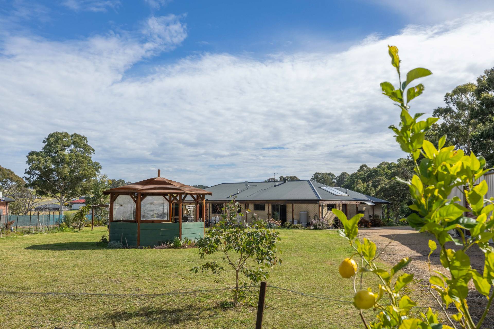The wraparound veranda creates the perfect setting for outdoor entertaining, weekend barbecues or simply relaxing while watching the kids play in the yard. The property also includes a rainwater tank for keeping the veggie gardens thriving year round and a charming gazebo that offers the ideal private spot to unwind and escape with a good book.