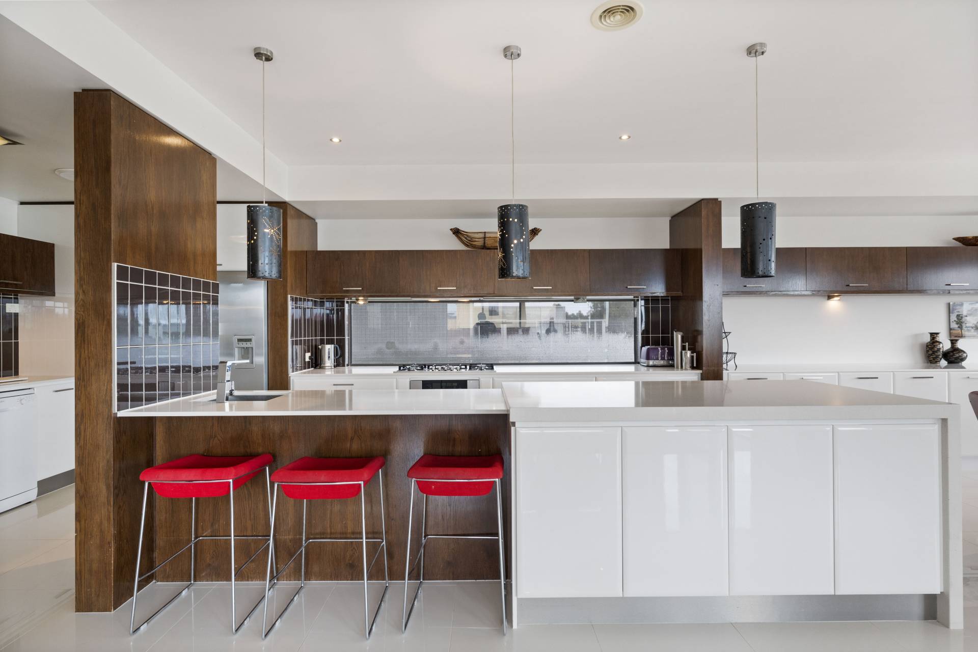 At the heart of the home, the grand double kitchen impresses with extensive storage, dual preparation zones and premium appliances, which then flows seamlessly to a massive deck designed for large-scale entertaining and capturing breathtaking water views. Multiple living zones are thoughtfully positioned throughout the home, offering versatility and quiet spaces to relax.