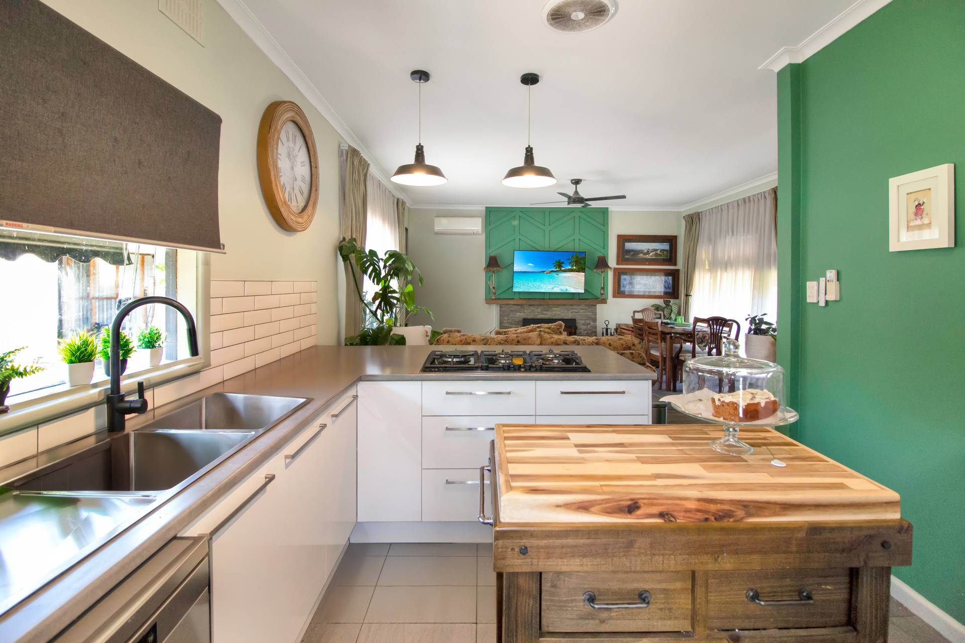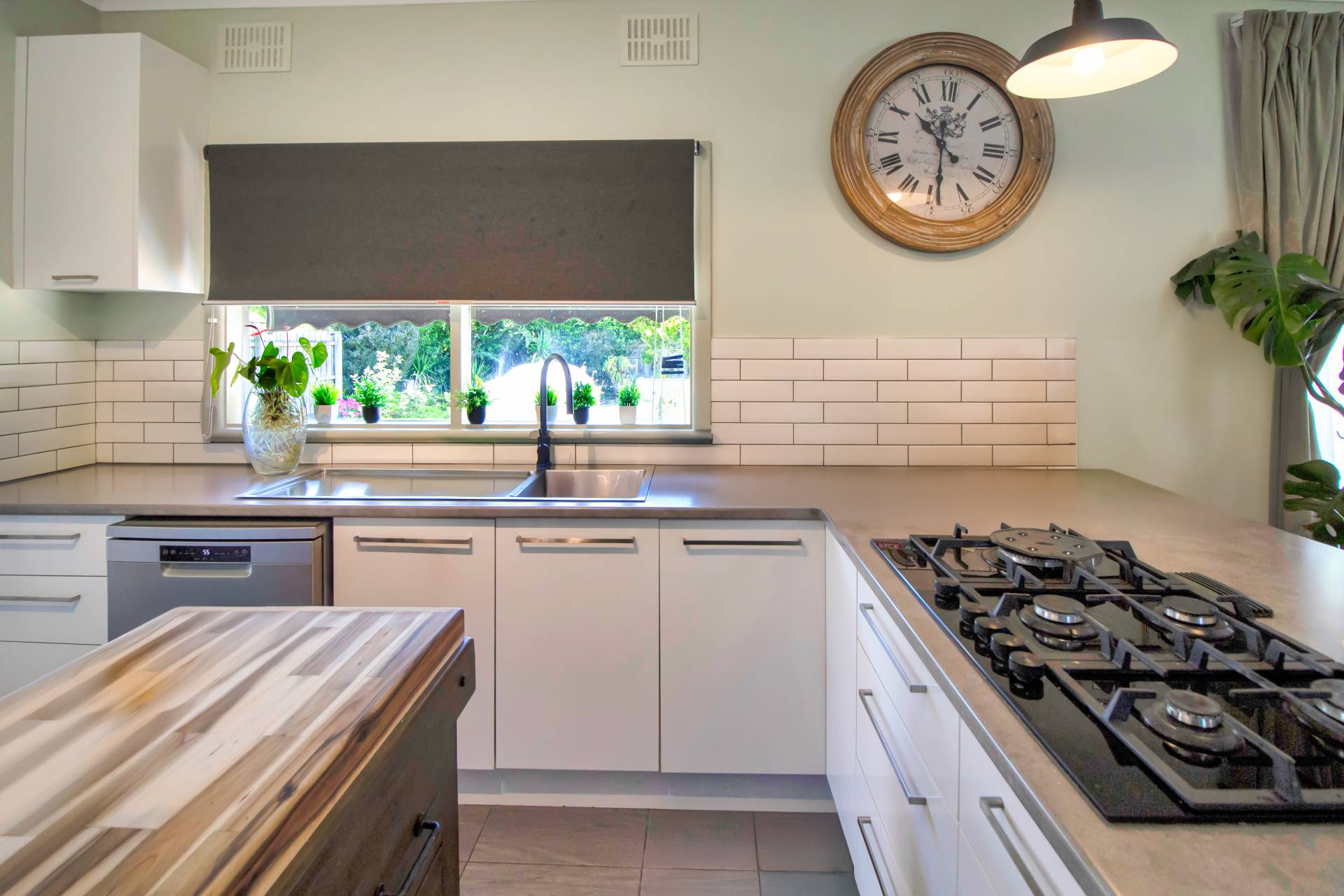 The brand-new kitchen features a breakfast bar, dishwasher, stainless steel appliances, gas cooktop and ample storage. The updated bathroom includes a separate bath and shower, servicing three bedrooms, two of which feature built-in robes. The laundry has also been modernised to match the fresh new look of the home.